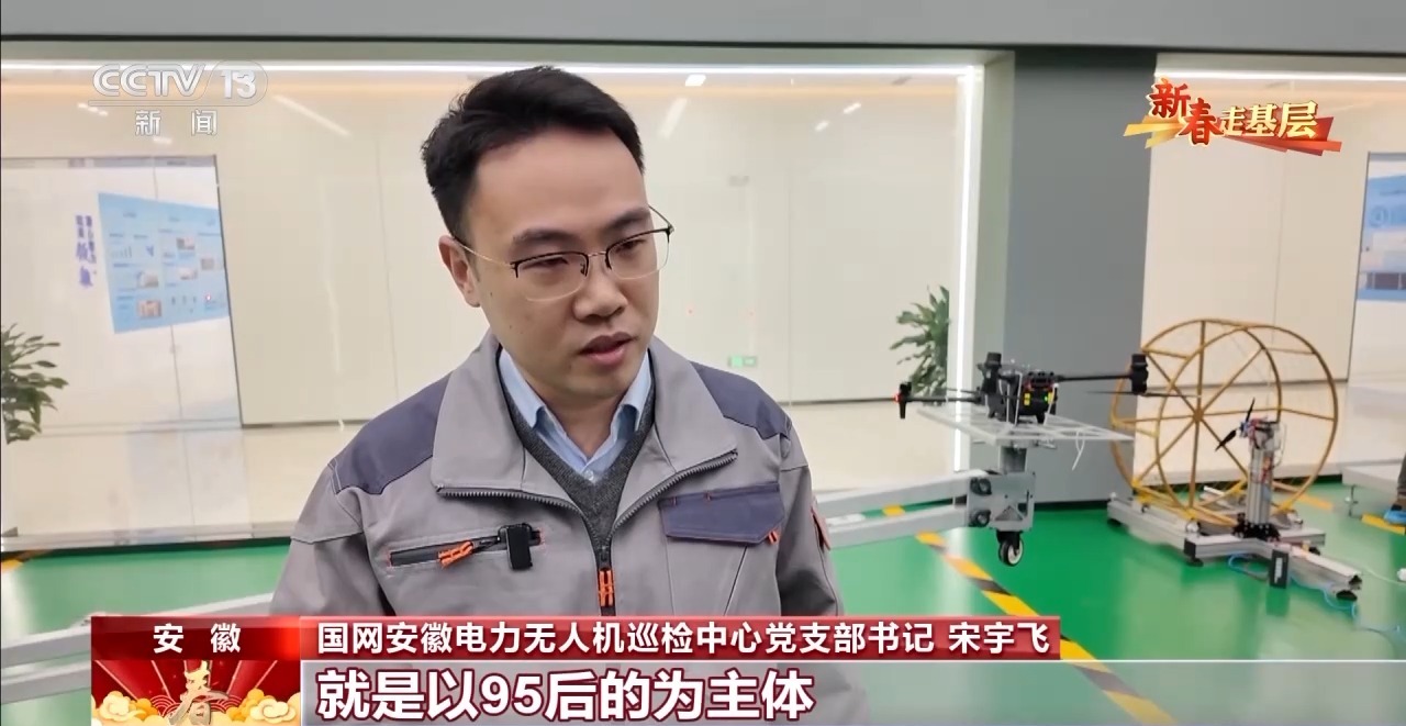 國網(wǎng)安徽電力無人機(jī)巡檢中心黨支部書記 宋宇飛:我們這個(gè)團(tuán)隊(duì)就是以95后的為主體,占比應(yīng)該是在60%。