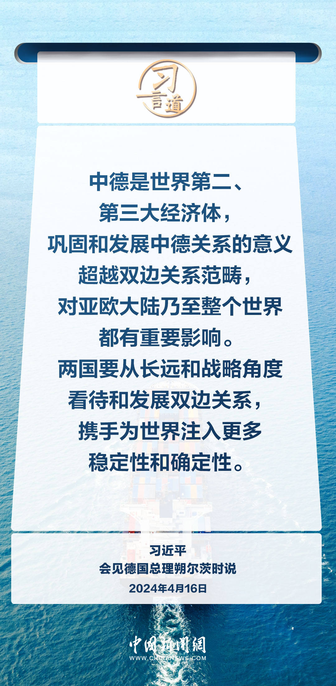 4月16日上午,國家主席習近平在北京釣魚臺國賓館會見德國總理朔爾茨。習近平指出——