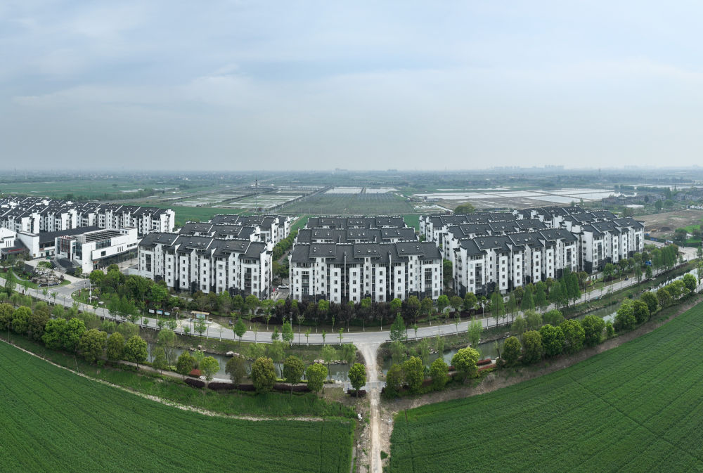 這是位于浙江省湖州市安置上岸漁民的義皋新村(2024年4月11日攝,無人機(jī)照片)。