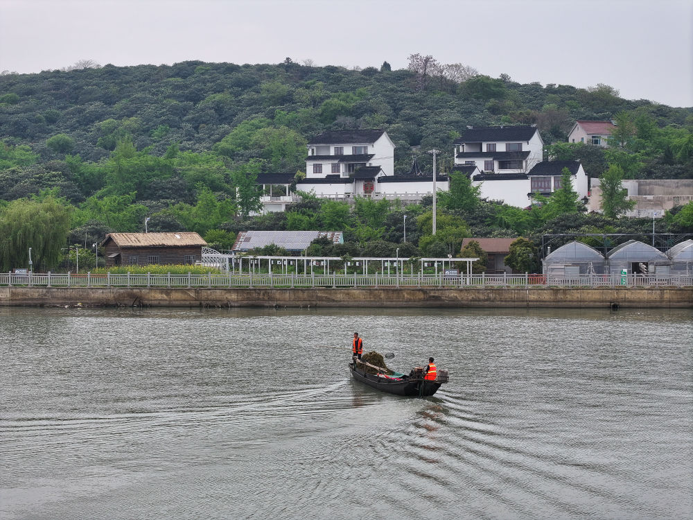 2024年4月11日,江蘇省蘇州市吳中區(qū)金庭水利水務(wù)管理服務(wù)站的工作人員(退捕漁民)在太湖上打撈漂浮物(無人機(jī)照片)。2020年,為保護(hù)太湖水生生物資源、促進(jìn)水域生態(tài)環(huán)境有效改善,金庭鎮(zhèn)漁民停止捕撈作業(yè),部分被安置到環(huán)衛(wèi)站、旅游集團(tuán)就業(yè)。
