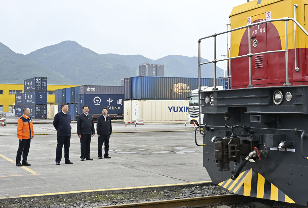4月22日至23日,習(xí)近平總書記在重慶市考察調(diào)研。他來到重慶國際物流樞紐園區(qū),了解當(dāng)?shù)丶涌旖ㄔO(shè)西部陸海新通道等情況。