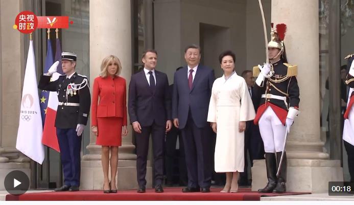 當(dāng)?shù)貢r(shí)間5月6日下午,國(guó)家主席習(xí)近平和夫人彭麗媛乘車抵達(dá)愛麗舍宮。