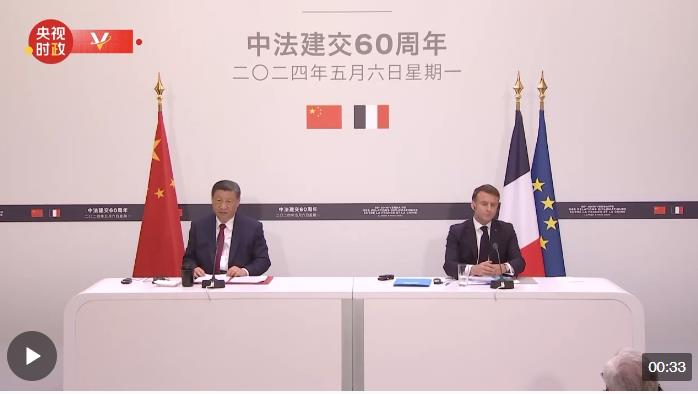 當地時間5月6日晚,習近平同法國總統馬克龍共同會見記者。