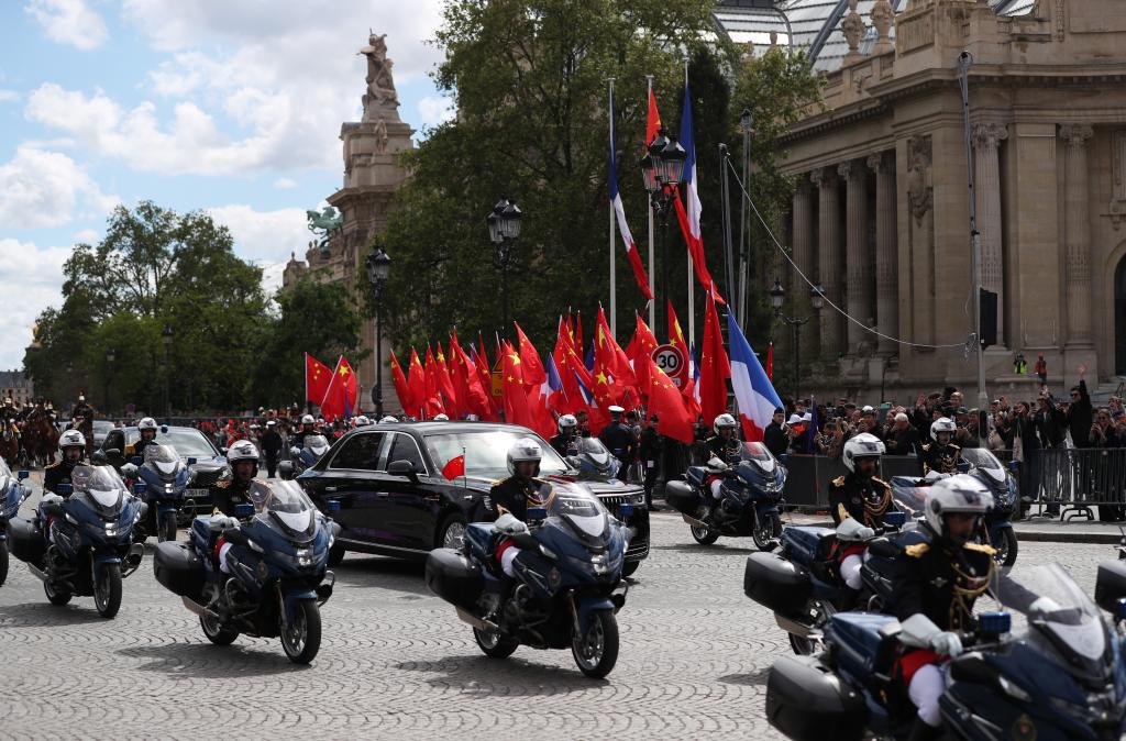 五月的巴黎,風和景明。塞納河畔,榮軍院金色穹頂熠熠生輝,五星紅旗和藍白紅三色旗迎風飄揚。