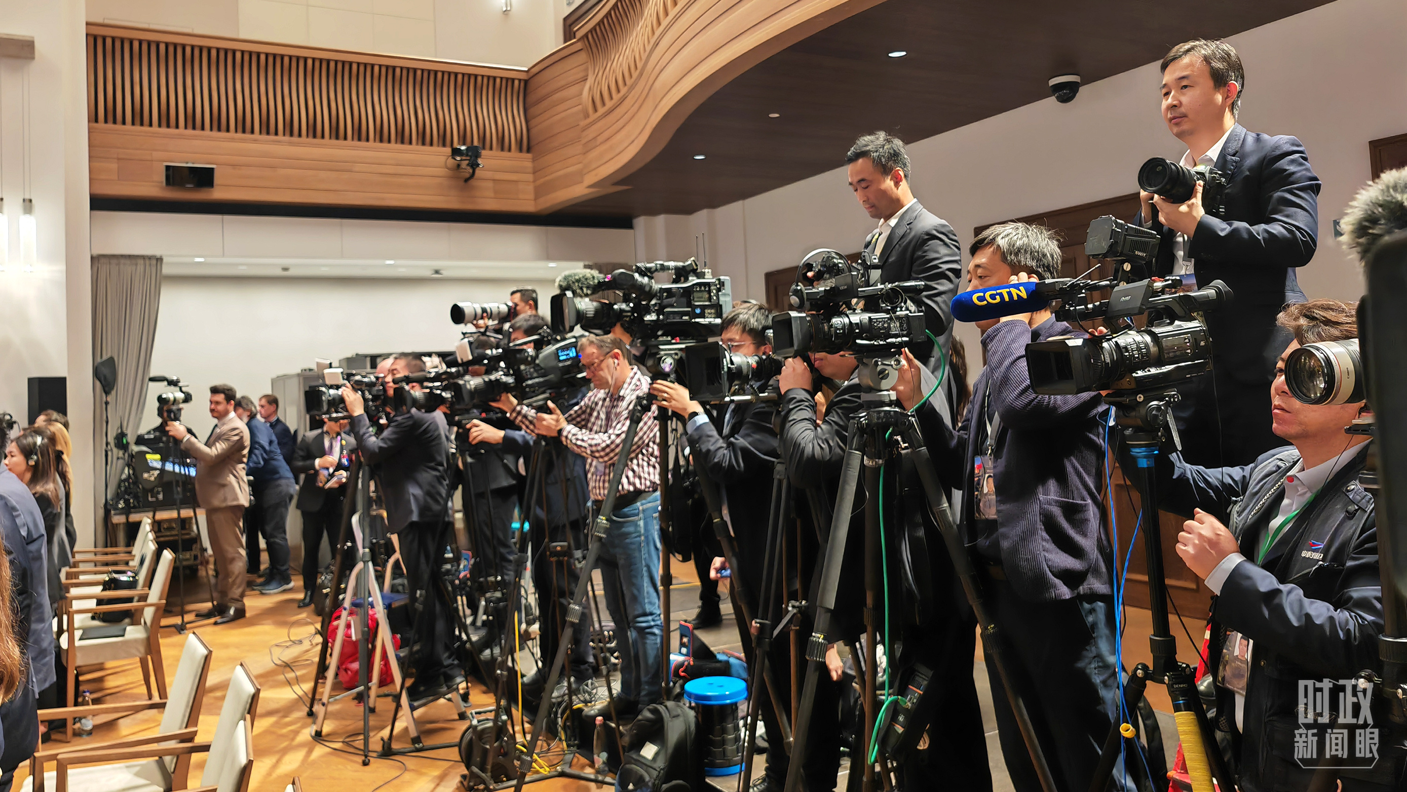 習(xí)主席同歐爾班總理共同會(huì)見記者,現(xiàn)場記者云集。(總臺(tái)央廣記者馬喆拍攝)