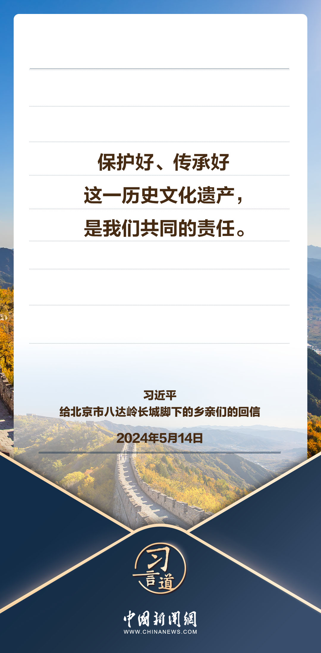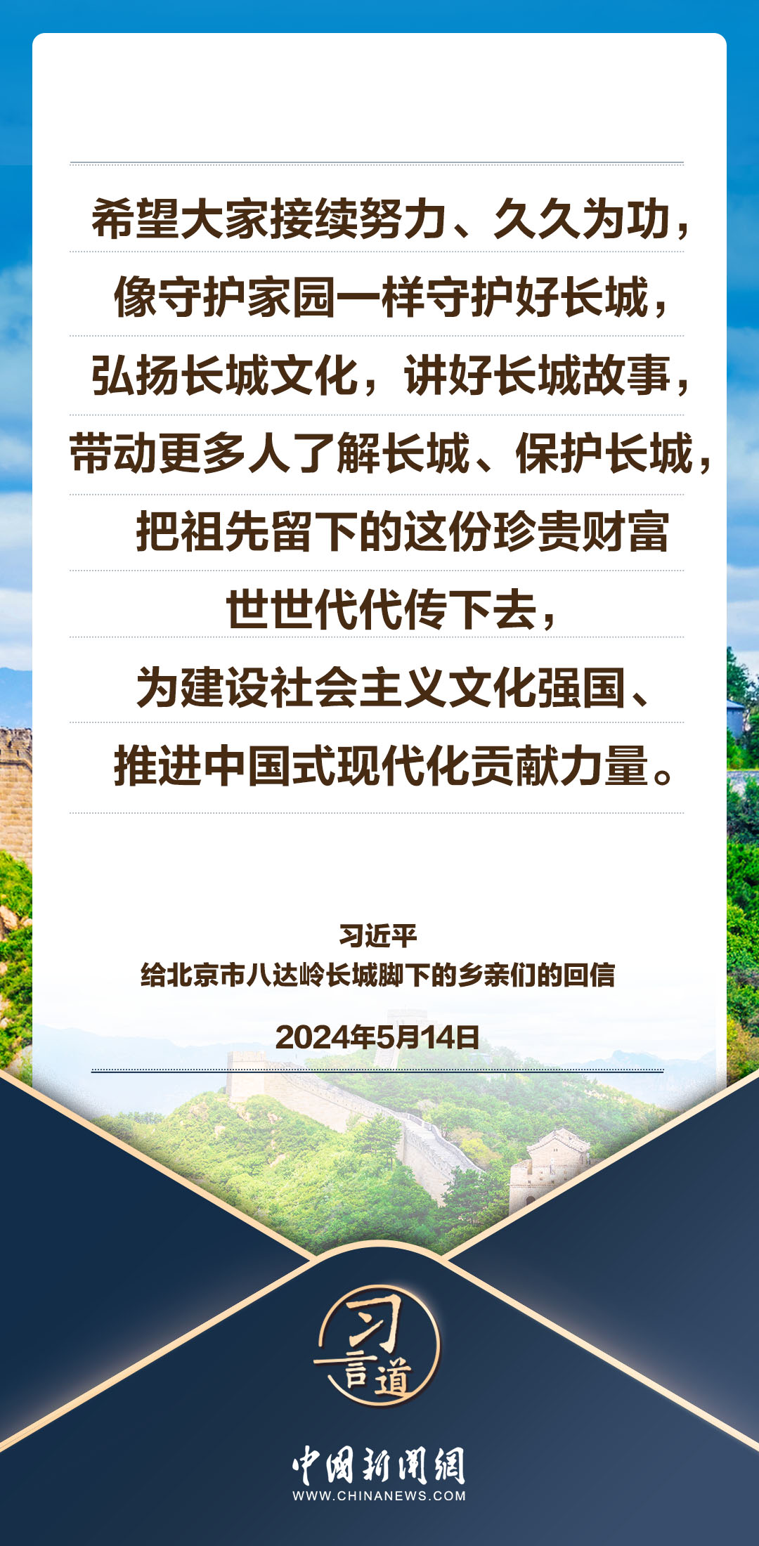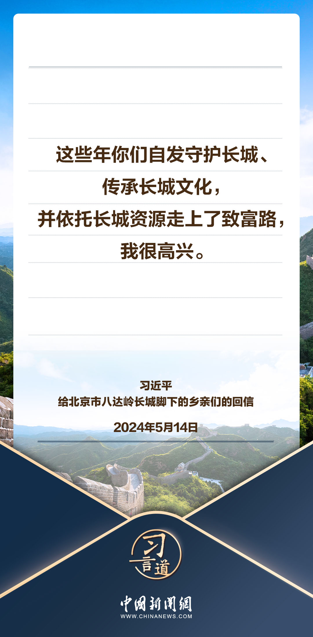 中共中央總書(shū)記、國(guó)家主席、中央軍委主席習(xí)近平5月14日給北京市延慶區(qū)八達(dá)嶺鎮(zhèn)石峽村的鄉(xiāng)親們回信,向他們致以誠(chéng)摯問(wèn)候并提出殷切期望。習(xí)近平指出——