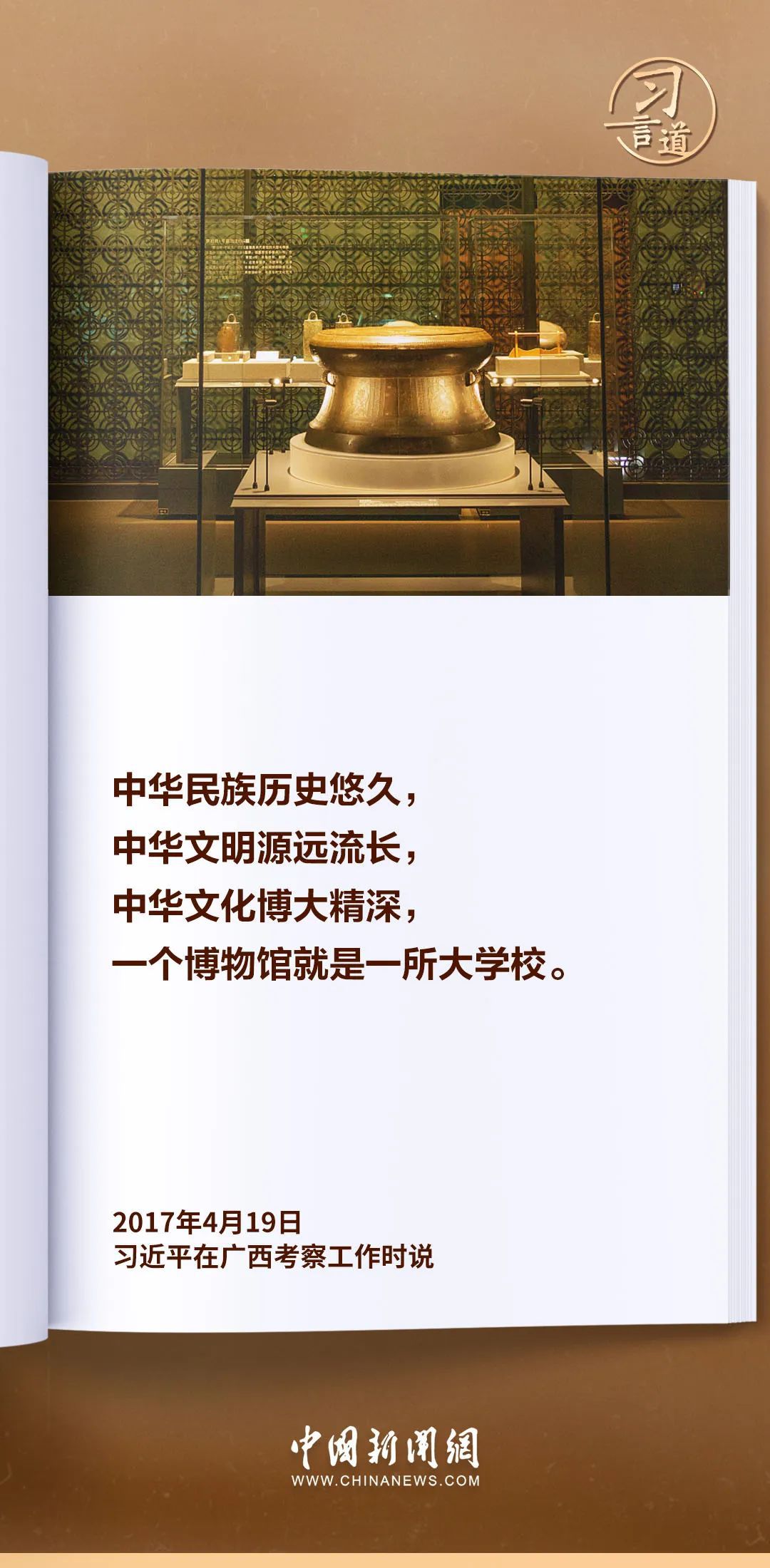 一個博物館就是一所大學(xué)校。習(xí)近平總書記高度重視博物館工作,多次發(fā)表重要論述,強調(diào)要積極推進文物保護利用和文化遺產(chǎn)保護傳承。