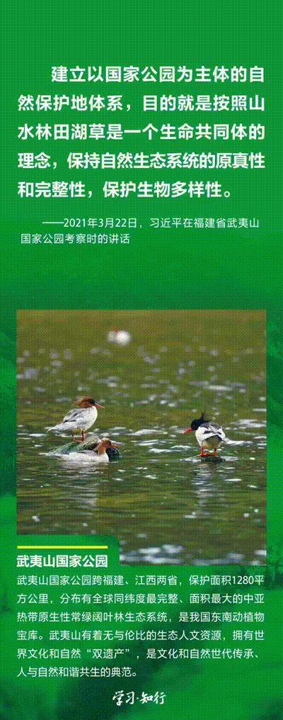 “生物多樣性使地球充滿生機(jī),也是人類生存和發(fā)展的基礎(chǔ)?!蓖七M(jìn)以國家公園為主體的自然保護(hù)地體系建設(shè),是習(xí)近平總書記作出的重要部署。三江源、大熊貓、東北虎豹、海南熱帶雨林、武夷山等首批國家公園正式設(shè)立以來,生態(tài)功能持續(xù)向好,對保護(hù)生物多樣性、推進(jìn)人與自然和諧共生的現(xiàn)代化具有重要意義。