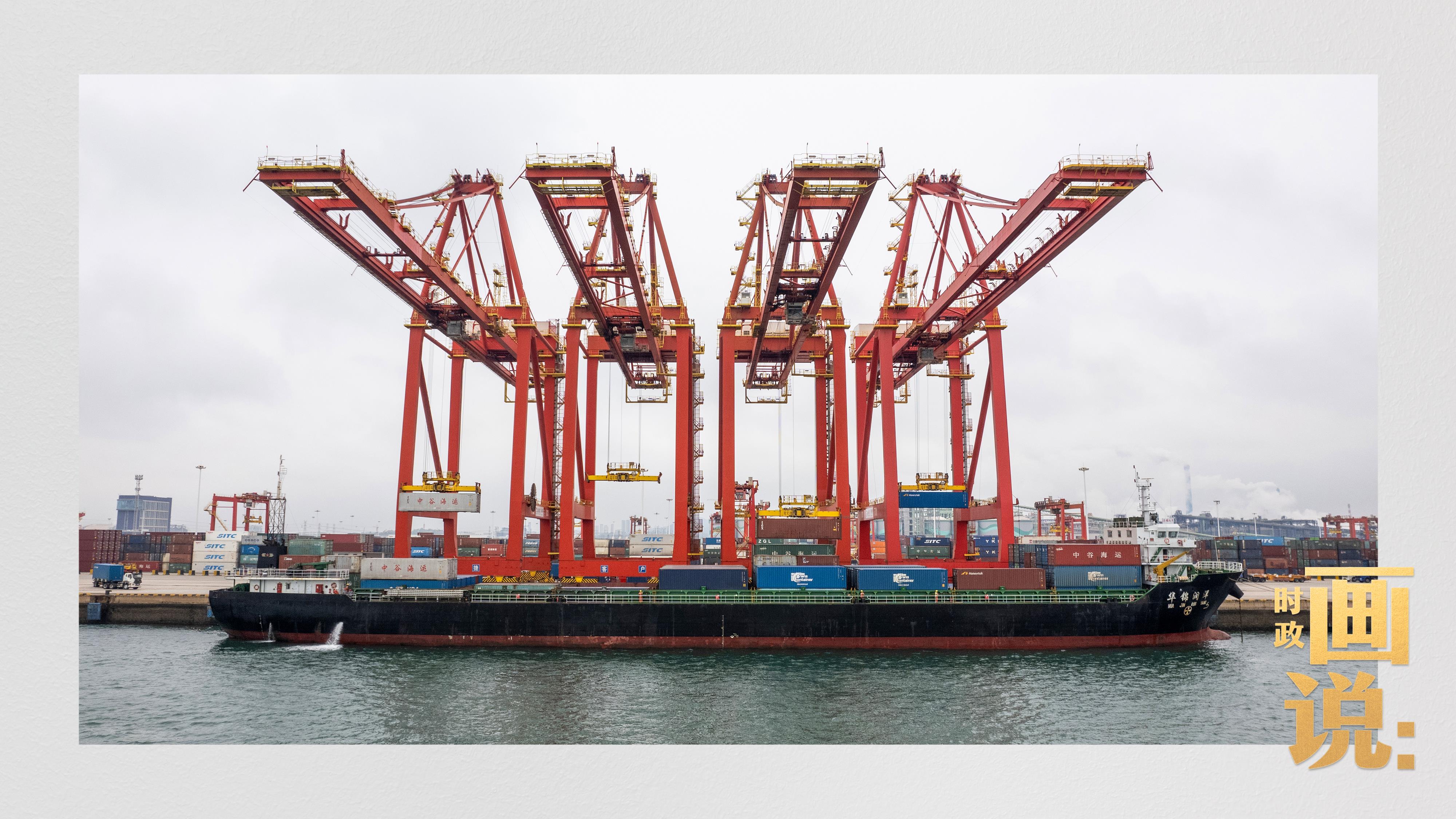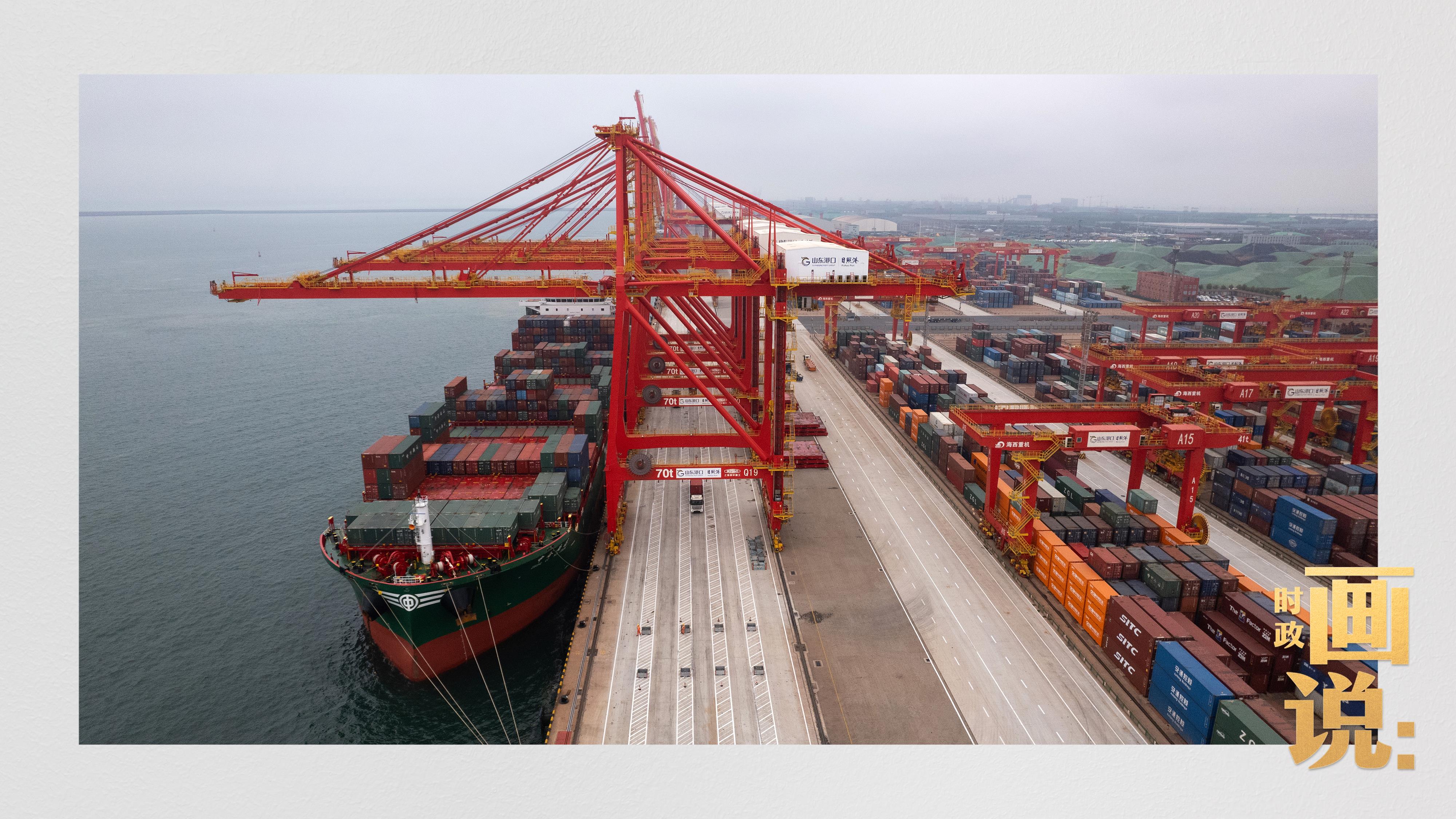 △山東港口集團(tuán)日照港石臼港區(qū)的全自動(dòng)化碼頭正在作業(yè)。近年來,日照港大力推動(dòng)港口智慧化、綠色化發(fā)展,建成全球首個(gè)順岸開放式全自動(dòng)化集裝箱碼頭。