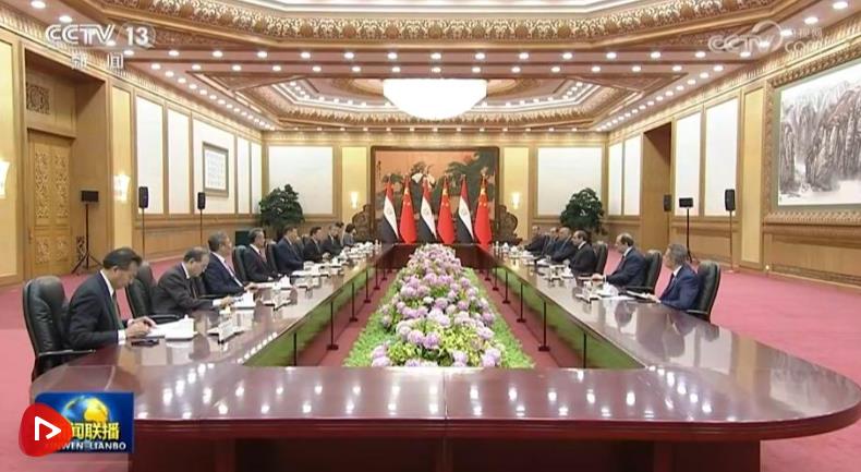 5月29日下午,國家主席習(xí)近平在北京人民大會(huì)堂同來華出席中國-阿拉伯國家合作論壇第十屆部長(zhǎng)級(jí)會(huì)議開幕式并進(jìn)行國事訪問的埃及總統(tǒng)塞西舉行會(huì)談。
