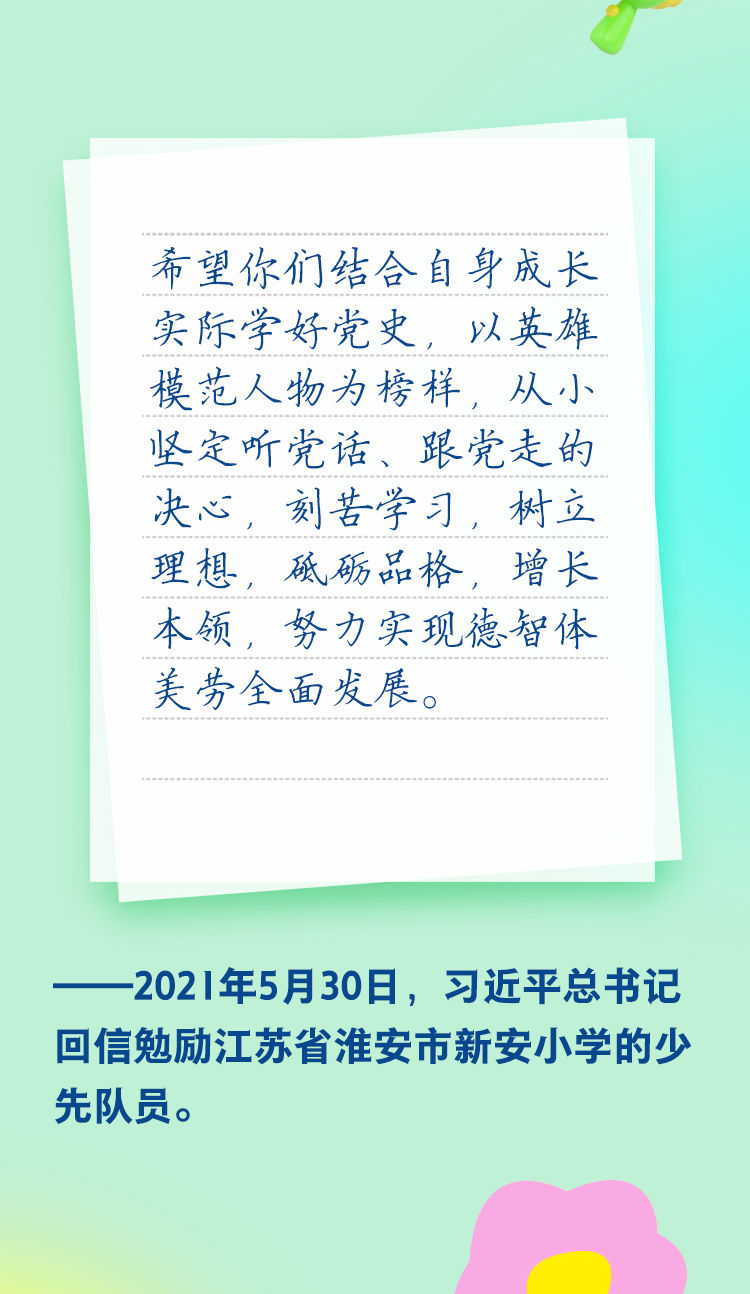 在“六一”國(guó)際兒童節(jié)即將到來(lái)之際,習(xí)近平總書記回信勉勵(lì)四川省南充市嘉陵區(qū)之江小學(xué)學(xué)生“堅(jiān)持德智體美勞全面發(fā)展,爭(zhēng)做愛(ài)黨愛(ài)國(guó)、自立自強(qiáng)、奮發(fā)向上的新時(shí)代好少年”,并祝全國(guó)小朋友們“六一”國(guó)際兒童節(jié)快樂(lè)。 [詳細(xì)]
