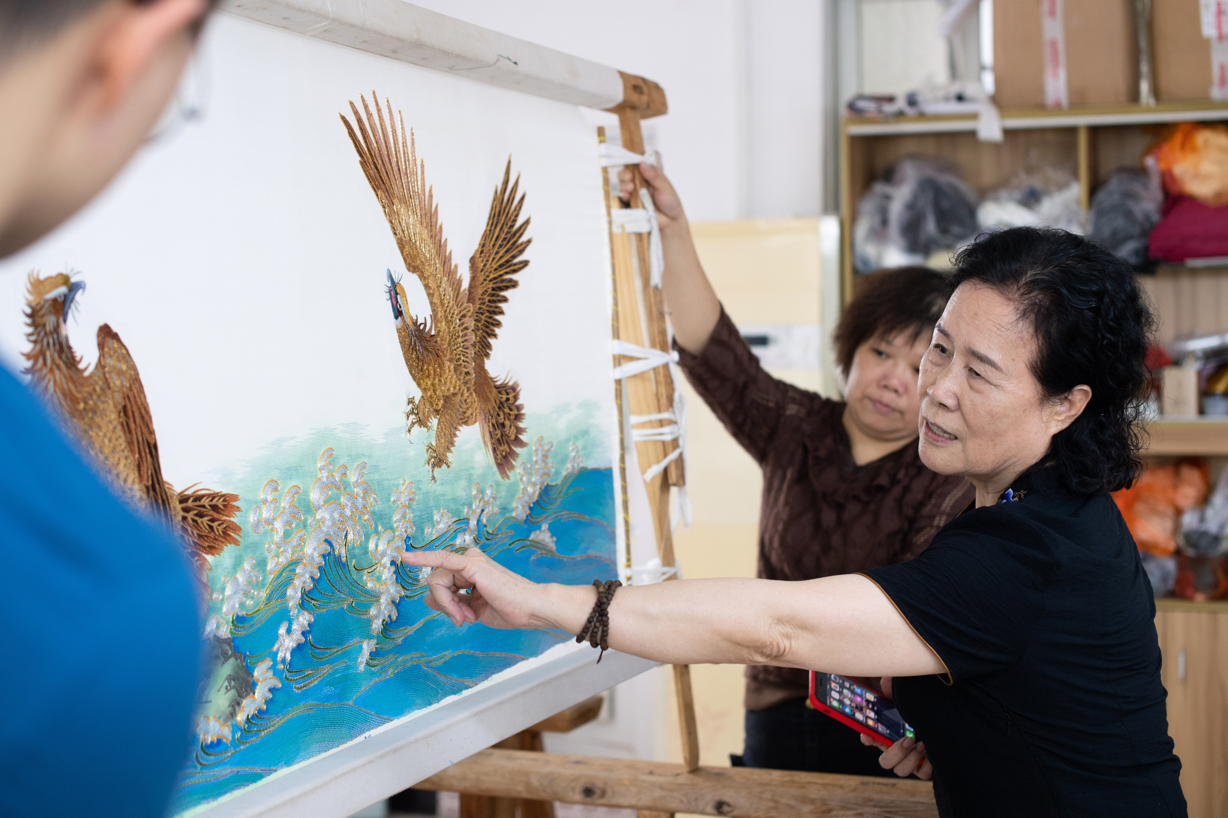 國家級非物質文化遺產(chǎn)代表性項目粵繡(潮繡)代表性傳承人康惠芳。