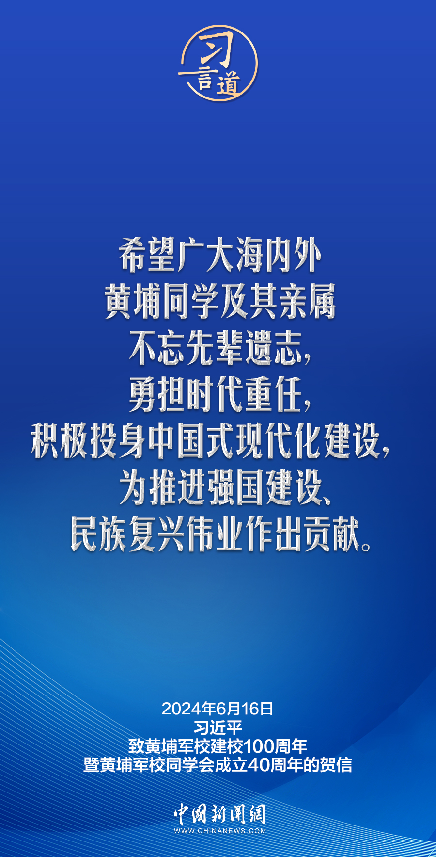 在黃埔軍校建校100周年暨黃埔軍校同學(xué)會(huì)成立40周年之際,中共中央總書記、國(guó)家主席、中央軍委主席習(xí)近平發(fā)來(lái)賀信,代表中共中央向黃埔軍校同學(xué)會(huì)表示熱烈祝賀,向廣大海內(nèi)外黃埔同學(xué)及其親屬致以誠(chéng)摯問(wèn)候。習(xí)近平指出——