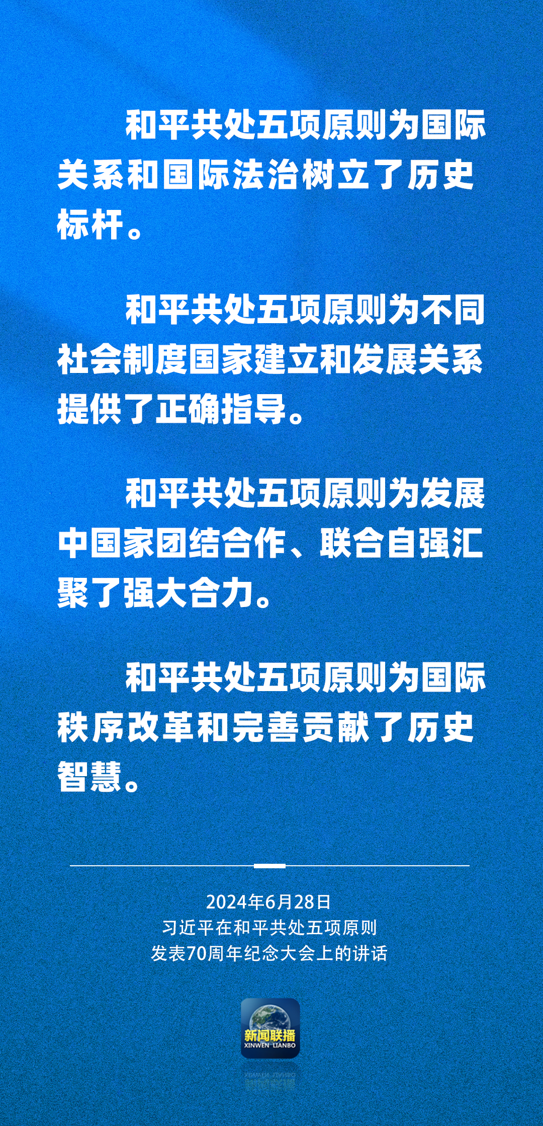 6月28日上午,國家主席習(xí)近平在北京人民大會(huì)堂出席和平共處五項(xiàng)原則發(fā)表70周年紀(jì)念大會(huì)并發(fā)表重要講話。