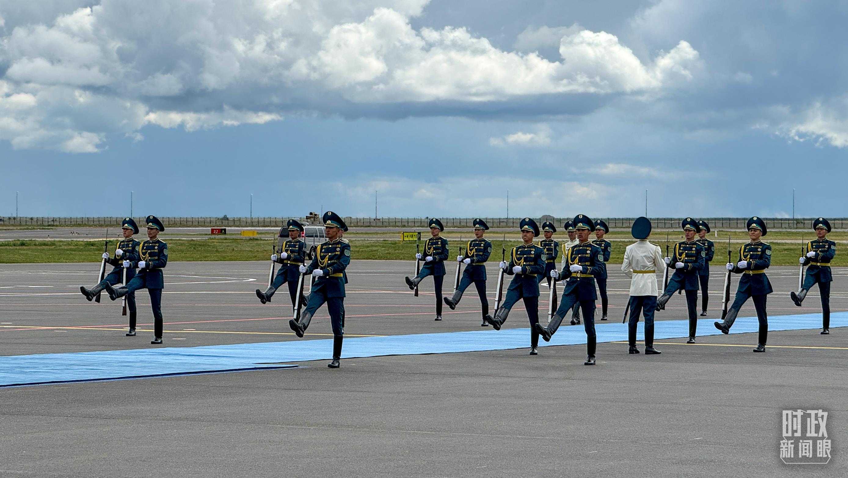 托卡耶夫總統(tǒng)在機場為習主席舉行了盛大隆重的迎賓儀式。100余名儀仗兵英姿挺拔,軍樂團奏響迎賓曲和迎賓號角。近百名哈薩克斯坦兒童揮舞中哈兩國國旗,歡呼“您好”,熱烈歡迎習主席到訪。