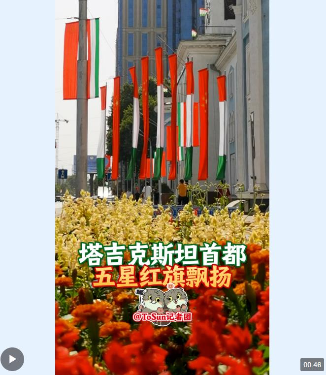當(dāng)?shù)貢r(shí)間7月3日下午,塔吉克斯坦首都杜尚別的主要街道都掛上了中塔兩國(guó)的國(guó)旗,ToSun記者團(tuán)還在街頭偶遇了一位在孔子學(xué)院學(xué)習(xí)的塔吉克斯坦學(xué)生。跟著我們的鏡頭一起去杜尚別看看吧!