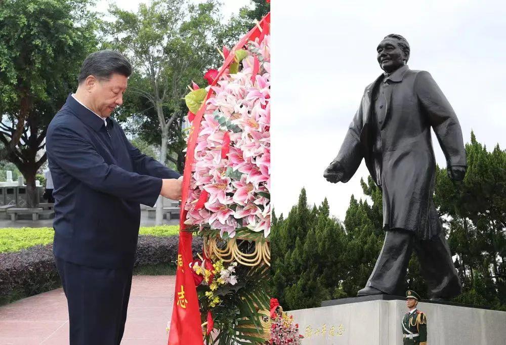 △2020年10月14日,深圳經(jīng)濟(jì)特區(qū)建立40周年慶祝大會(huì)在廣東深圳市隆重舉行,習(xí)近平總書記在會(huì)上發(fā)表重要講話。這是當(dāng)天下午,總書記來到蓮花山公園,向鄧小平同志銅像敬獻(xiàn)花籃。