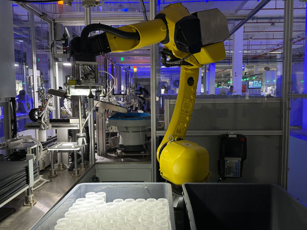 南安一家衛(wèi)浴企業(yè)生產(chǎn)線上,機(jī)械臂正在抓取過濾器零件。新華社記者 龐夢(mèng)霞 攝