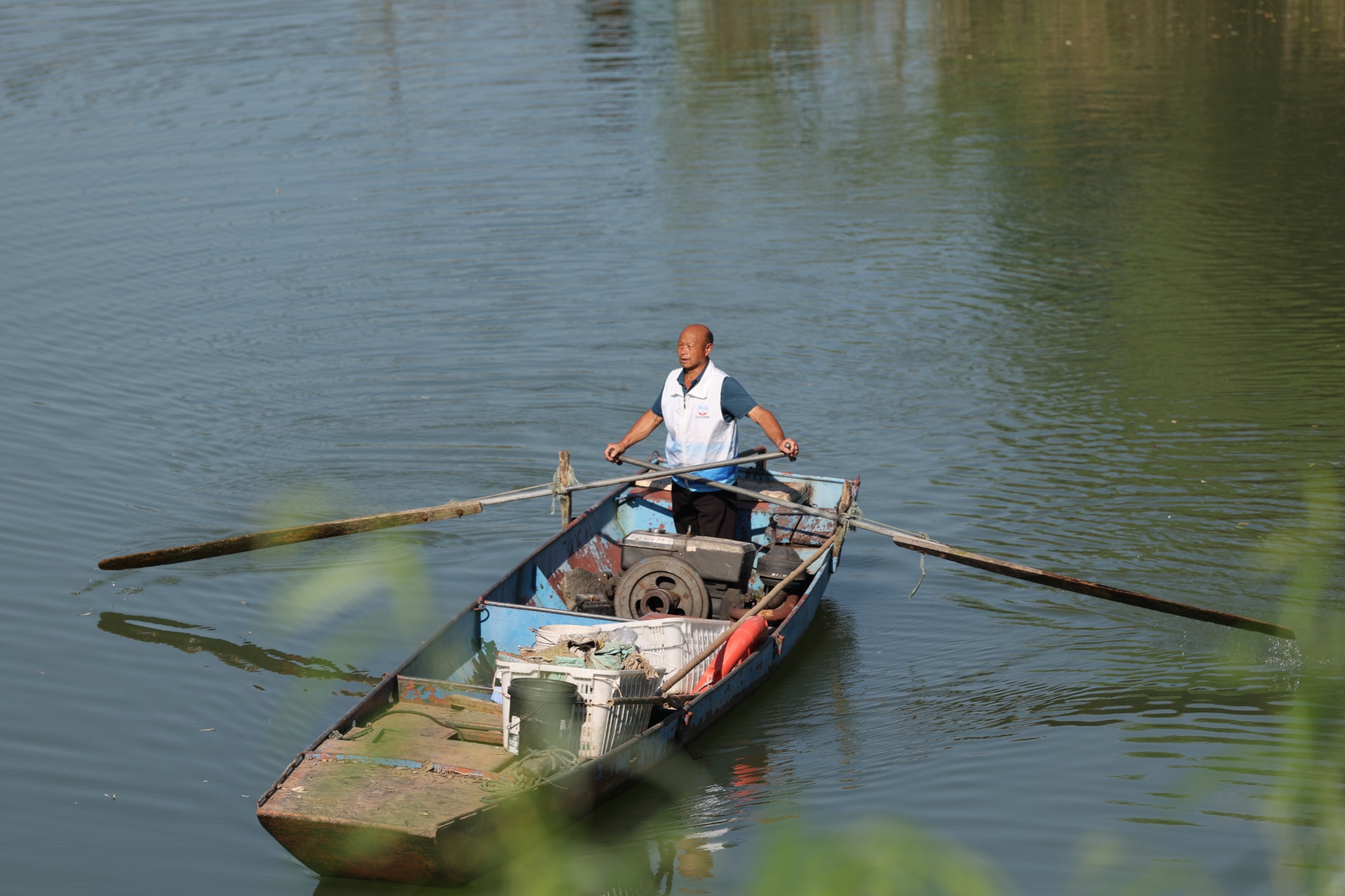 63歲的蔣德新是護(hù)水隊(duì)年齡最大的成員