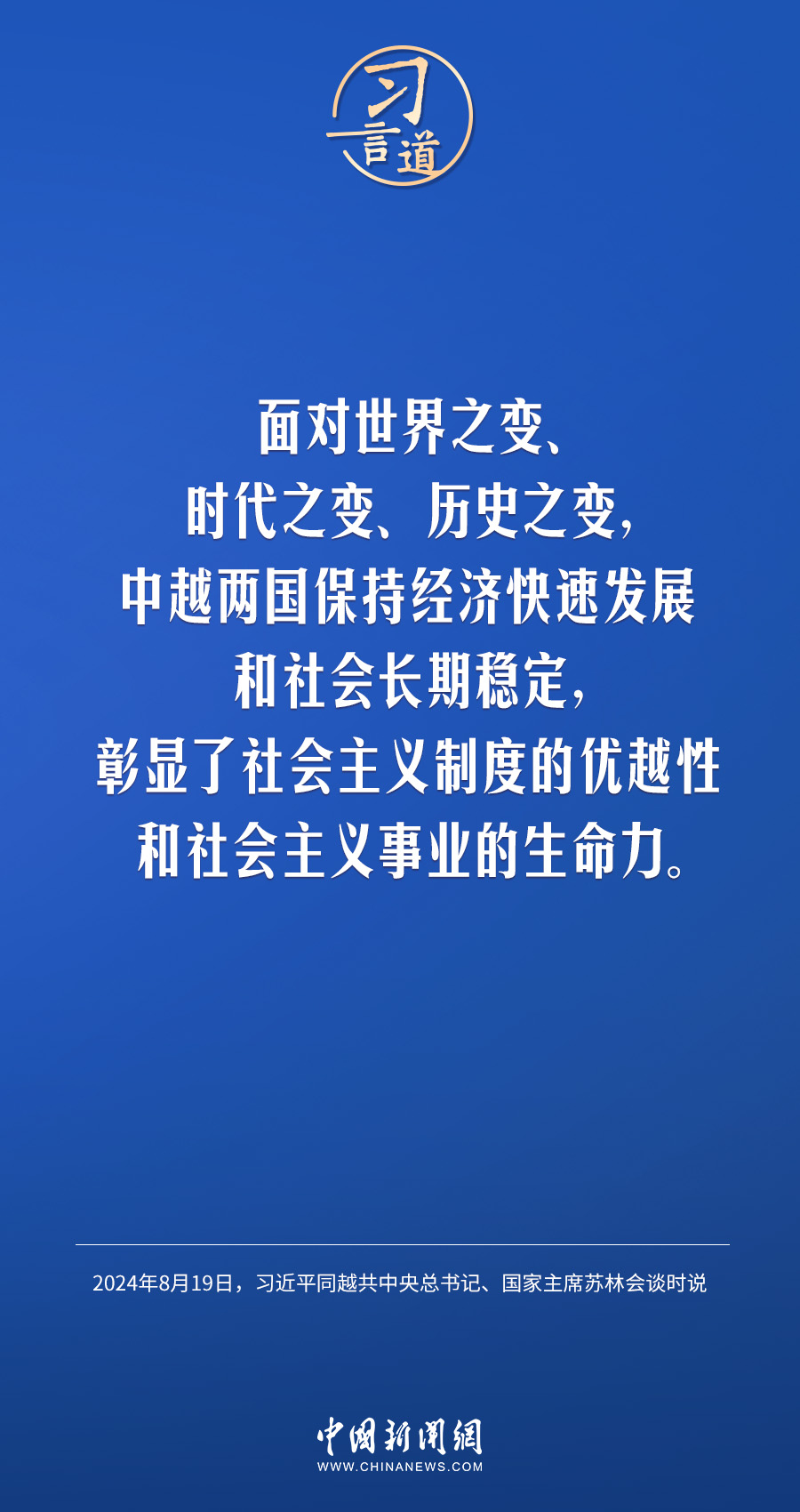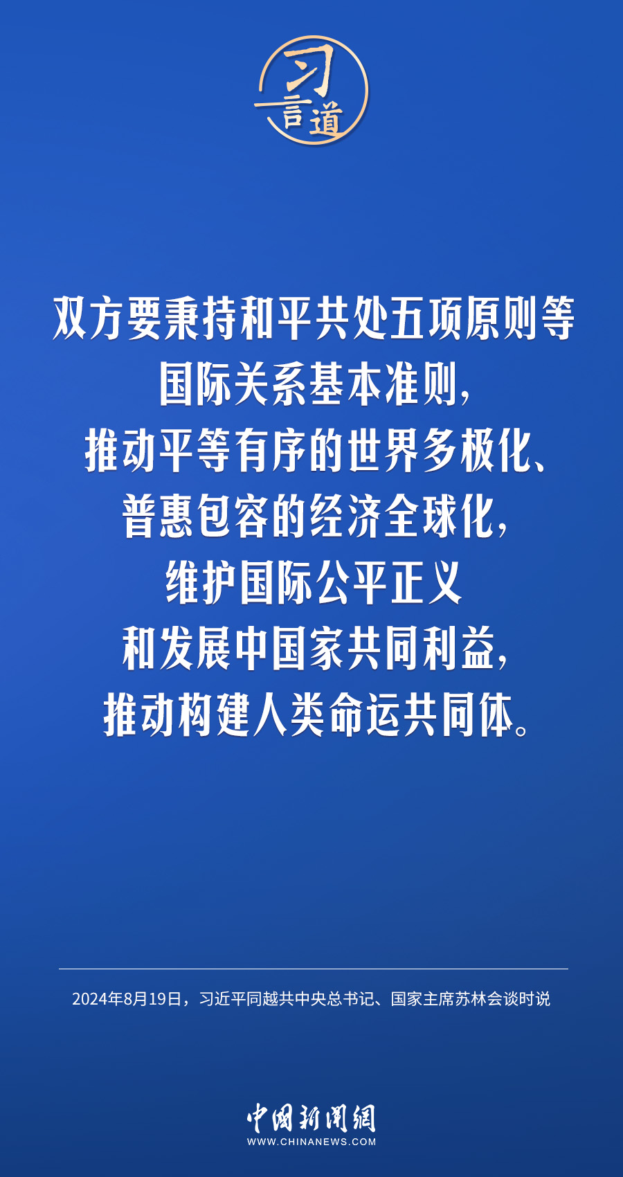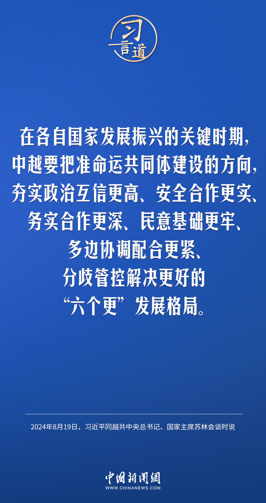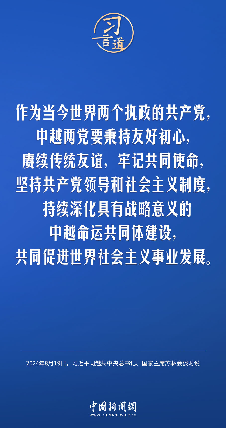 8月19日,中共中央總書記、國家主席習(xí)近平在北京人民大會堂同來華進行國事訪問的越共中央總書記、國家主席蘇林舉行會談。習(xí)近平指出——