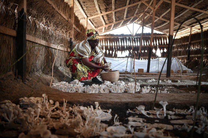 2024年2月6日,在中非共和國(guó)達(dá)馬拉,法蒂瑪在菇棚內(nèi)收獲菌草菇。2022年,法蒂瑪在聽說中國(guó)菌草專家在班吉傳授技術(shù)后主動(dòng)前往學(xué)習(xí),從一間小菌棚起步,逐漸擴(kuò)大為如今小有名氣的合作社。 新華社記者 韓旭 攝