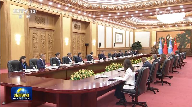 9月5日中午,國(guó)家主席習(xí)近平在北京人民大會(huì)堂會(huì)見(jiàn)來(lái)華出席中非合作論壇北京峰會(huì)的聯(lián)合國(guó)秘書(shū)長(zhǎng)古特雷斯。