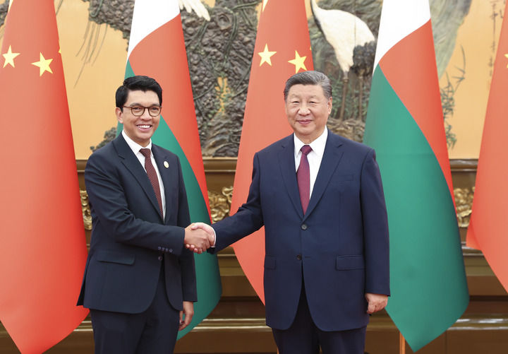 習近平指出,馬達加斯加是中非合作論壇的首倡國之一,為論壇發(fā)展作出積極貢獻。中方愿同馬方積極落實中非合作論壇北京峰會成果,為中馬、中非關(guān)系持續(xù)深入發(fā)展注入新動力。