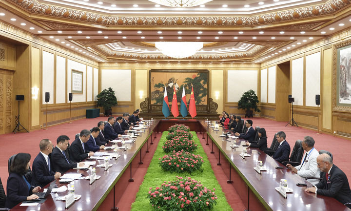 9月6日下午,國家主席習近平在北京人民大會堂會見來華出席中非合作論壇北京峰會的馬達加斯加總統(tǒng)拉喬利納。新華社記者 丁林 攝