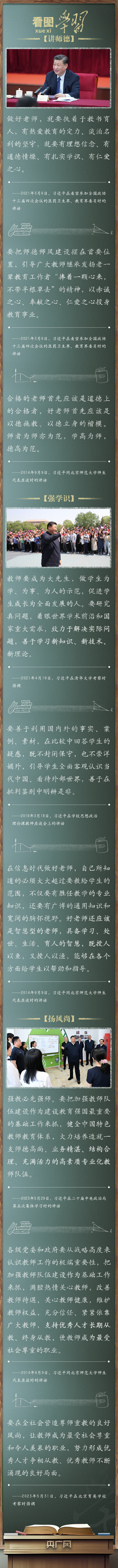 教育大計,教師為本。黨的十八大以來,以習近平同志為核心的黨中央堅持把教育擺在優(yōu)先發(fā)展的戰(zhàn)略位置,推動新時代教育事業(yè)取得歷史性成就、發(fā)生格局性變化。習近平總書記緊扣“培養(yǎng)什么人、怎樣培養(yǎng)人、為誰培養(yǎng)人”這一教育的根本問題,對建設新時代高素質(zhì)專業(yè)化教師隊伍作出一系列重要指示,激勵廣大教師立德修身、敬業(yè)立學,強調(diào)要在全黨全社會弘揚尊師重教的社會風尚。在第四十個教師節(jié)到來之際,讓我們一起牢記并踐行總書記的殷殷囑托!
