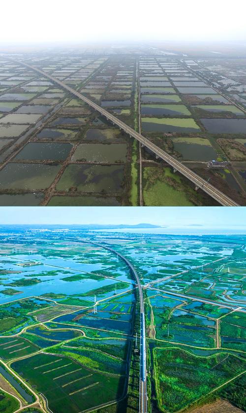 拼版圖片:圖為2015年和2023年十八聯圩的前后對比,此前是高密度養(yǎng)殖的漁場,如今已是連片濕地。受訪者供圖 制作:賈稀荃
