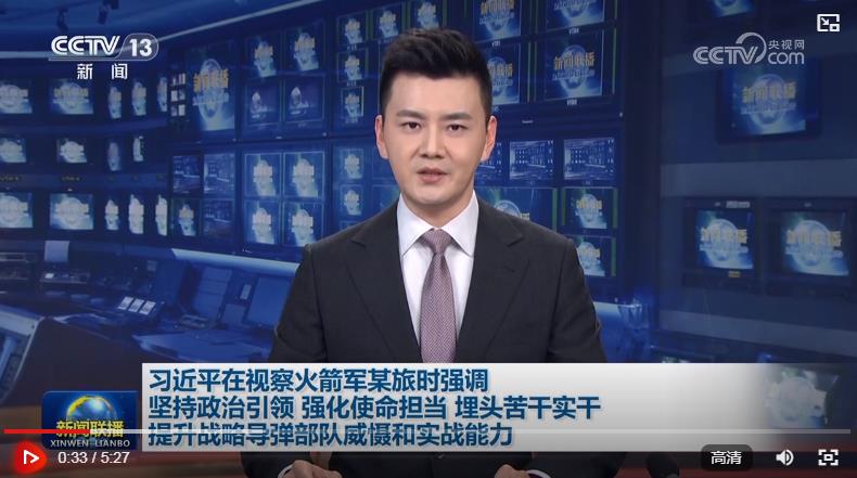 中共中央總書記、國家主席、中央軍委主席習(xí)近平17日到火箭軍某旅視察,強調(diào)要深入貫徹新時代強軍思想,貫徹新時代軍事戰(zhàn)略方針,把握戰(zhàn)略導(dǎo)彈部隊建設(shè)和作戰(zhàn)運用特點規(guī)律,堅持政治引領(lǐng),強化使命擔(dān)當(dāng),埋頭苦干實干,推進(jìn)部隊建設(shè)高質(zhì)量發(fā)展,提升戰(zhàn)略威懾和實戰(zhàn)能力,堅決完成黨和人民賦予的各項任務(wù)。