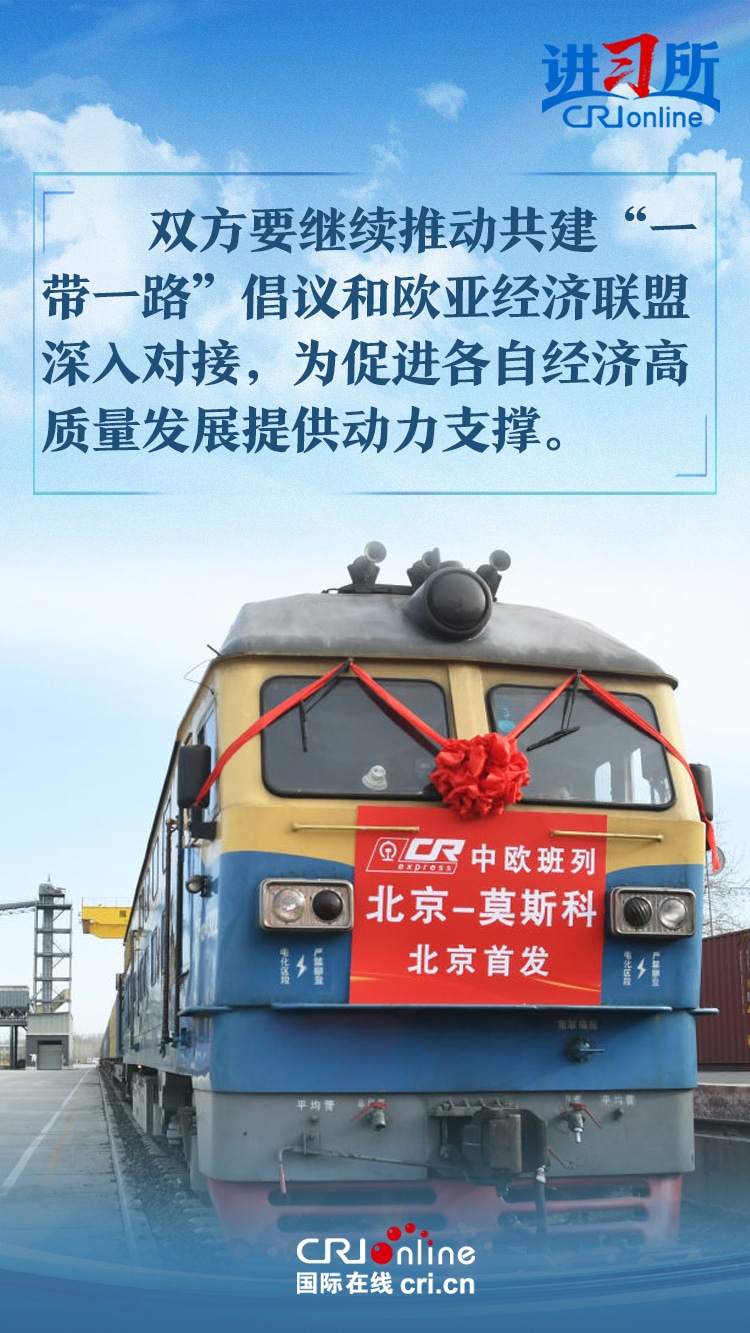 習(xí)近平主席在同俄羅斯總統(tǒng)普京會(huì)晤時(shí)指出,中俄世代友好的深厚情誼不會(huì)變,濟(jì)世為民的大國擔(dān)當(dāng)不會(huì)變。雙方要繼續(xù)推動(dòng)共建“一帶一路”倡議和歐亞經(jīng)濟(jì)聯(lián)盟深入對接,為促進(jìn)各自經(jīng)濟(jì)高質(zhì)量發(fā)展提供動(dòng)力支撐。