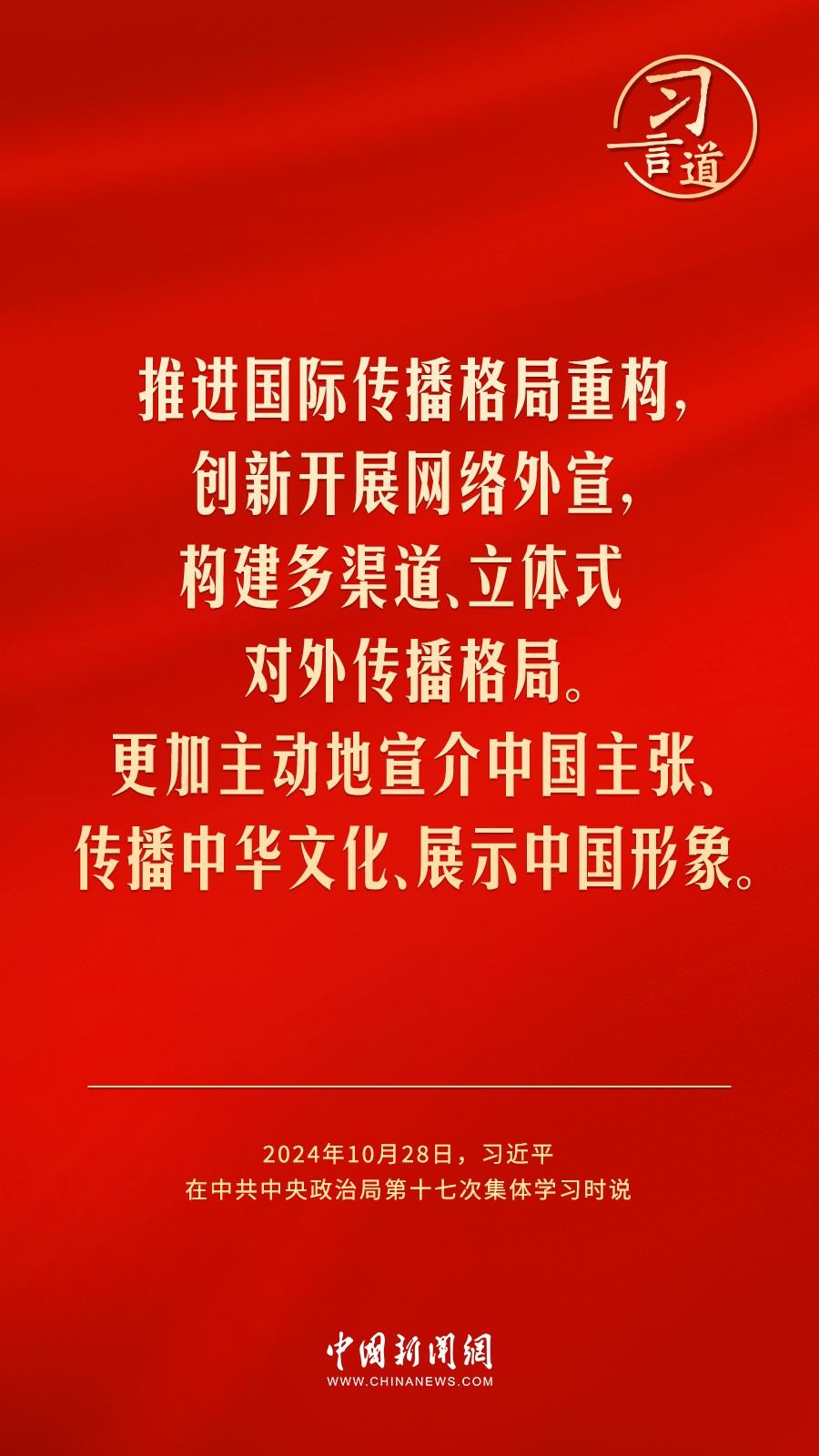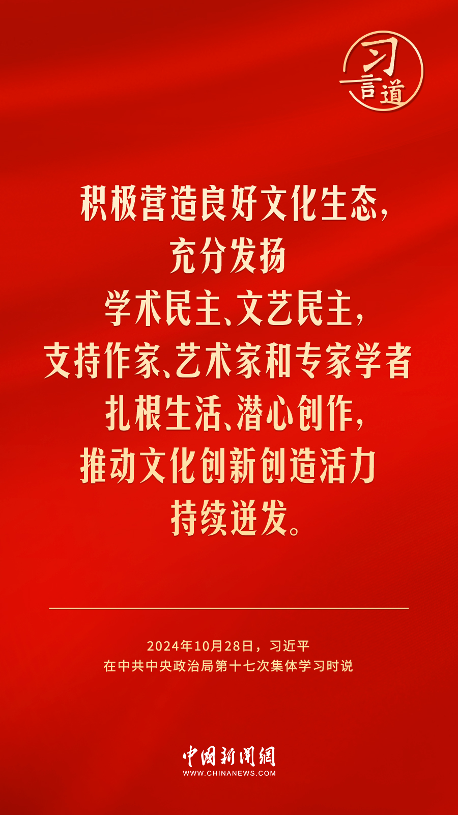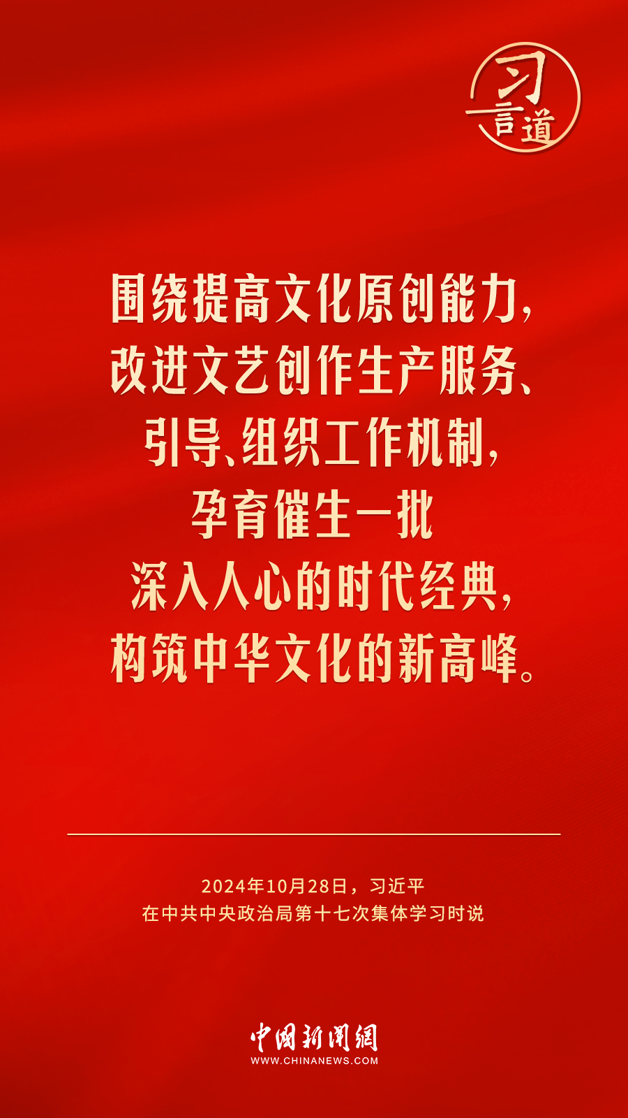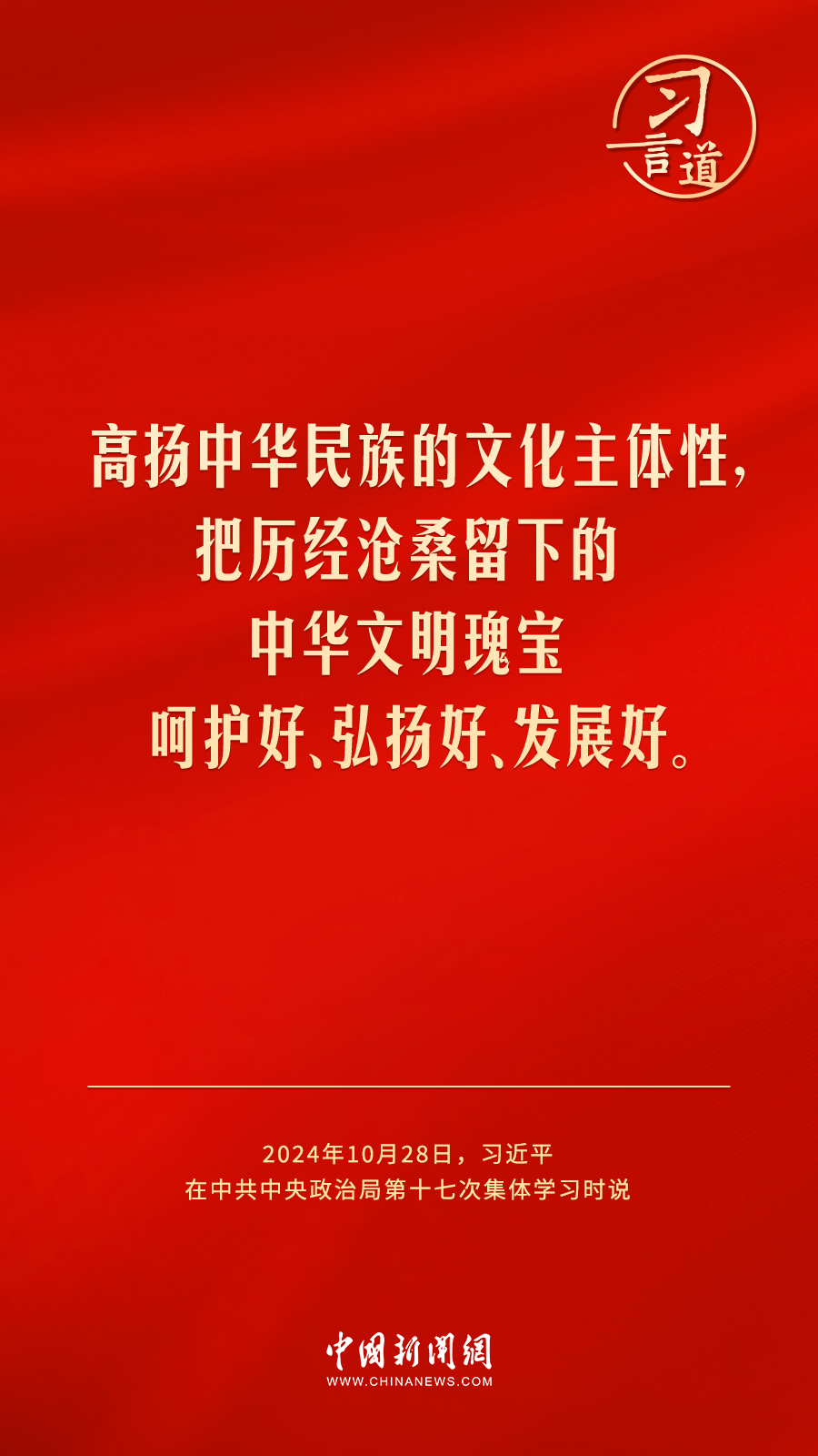 中共中央政治局10月28日下午就建設(shè)文化強(qiáng)國(guó)進(jìn)行第十七次集體學(xué)習(xí)。中共中央總書記習(xí)近平在主持學(xué)習(xí)時(shí)強(qiáng)調(diào)——