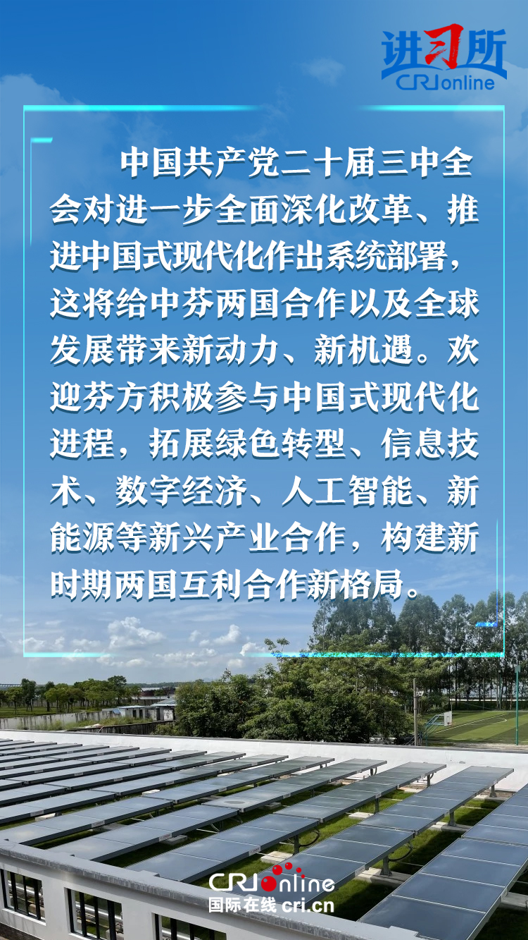 習(xí)近平指出,建交以來(lái),中芬始終友好相處、互尊互信,樹立了國(guó)與國(guó)之間超越歷史、文化、制度差異,平等交往的典范。中方愿同芬方一道,加強(qiáng)戰(zhàn)略合作,弘揚(yáng)友好傳統(tǒng),將中芬面向未來(lái)的新型合作伙伴關(guān)系進(jìn)一步推向前進(jìn),更好造福兩國(guó)和兩國(guó)人民,為世界和平和發(fā)展作出新貢獻(xiàn)。