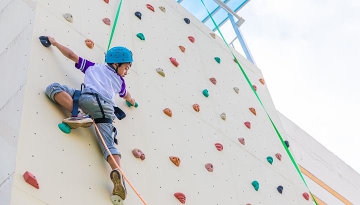 浙江臺州,正在學習攀巖課程的小學生