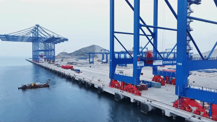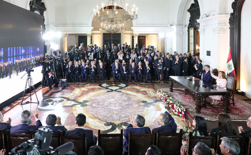 當?shù)貢r間11月14日晚,習近平主席同博魯阿爾特總統(tǒng)在利馬總統(tǒng)府以視頻方式共同出席錢凱港開港儀式。