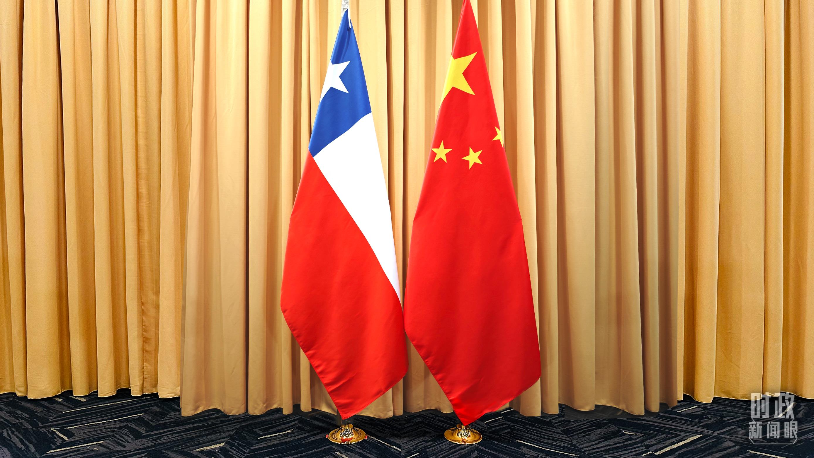 會見現(xiàn)場的中智兩國國旗。(總臺央視記者耿小龍拍攝)