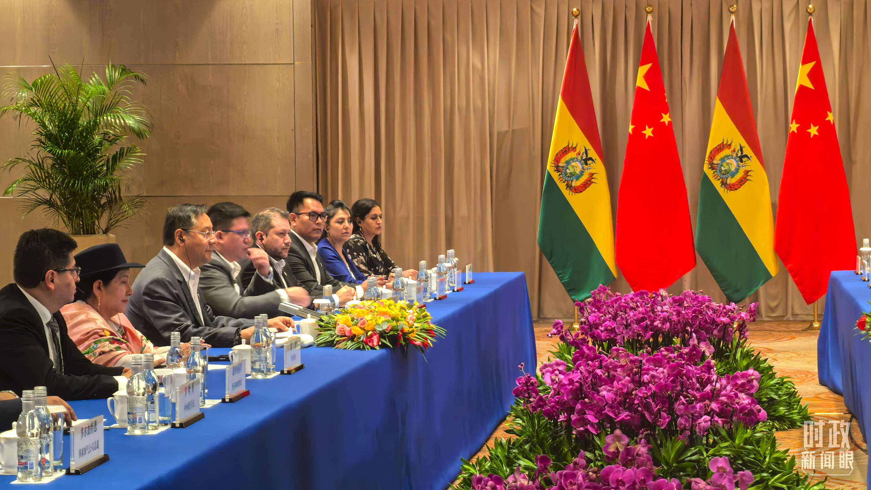 習(xí)主席會(huì)見玻利維亞總統(tǒng)阿爾塞現(xiàn)場。(總臺(tái)央廣記者潘毅拍攝)