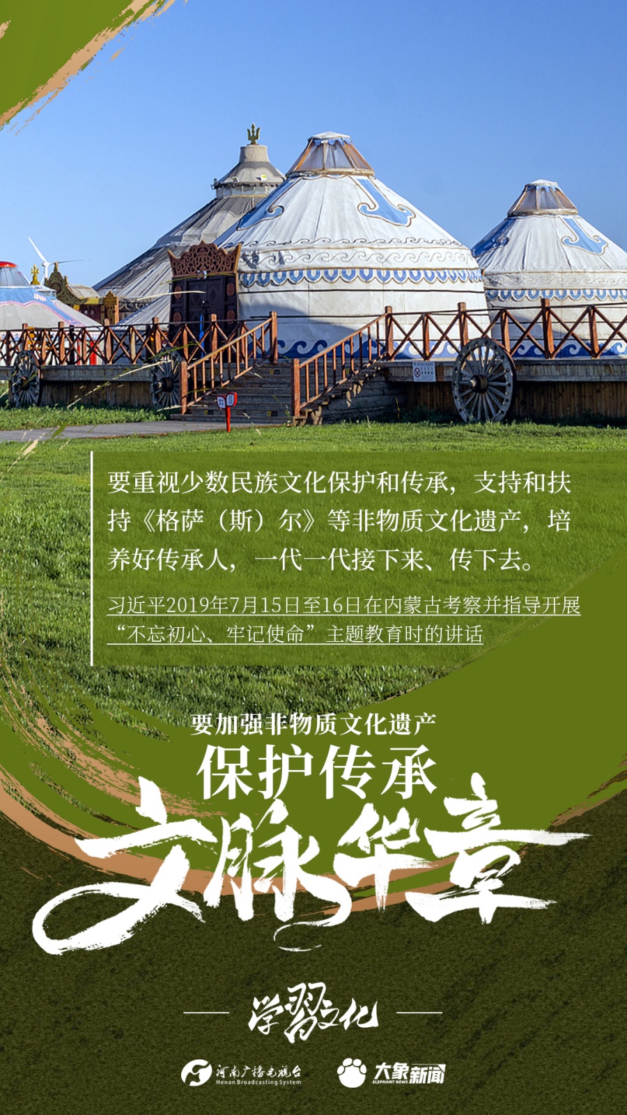 非物質(zhì)文化遺產(chǎn)是中華優(yōu)秀傳統(tǒng)文化的重要組成部分,是中華文明綿延傳承的生動見證,是我國各族人民寶貴的精神財(cái)富。習(xí)近平總書記十分關(guān)心非物質(zhì)文化遺產(chǎn)的保護(hù)傳承,多次強(qiáng)調(diào)“要扎實(shí)做好非物質(zhì)文化遺產(chǎn)的系統(tǒng)性保護(hù)”“培養(yǎng)好傳承人”等。大象新聞為您梳理,邀您一起學(xué)習(xí)、領(lǐng)悟、踐行。