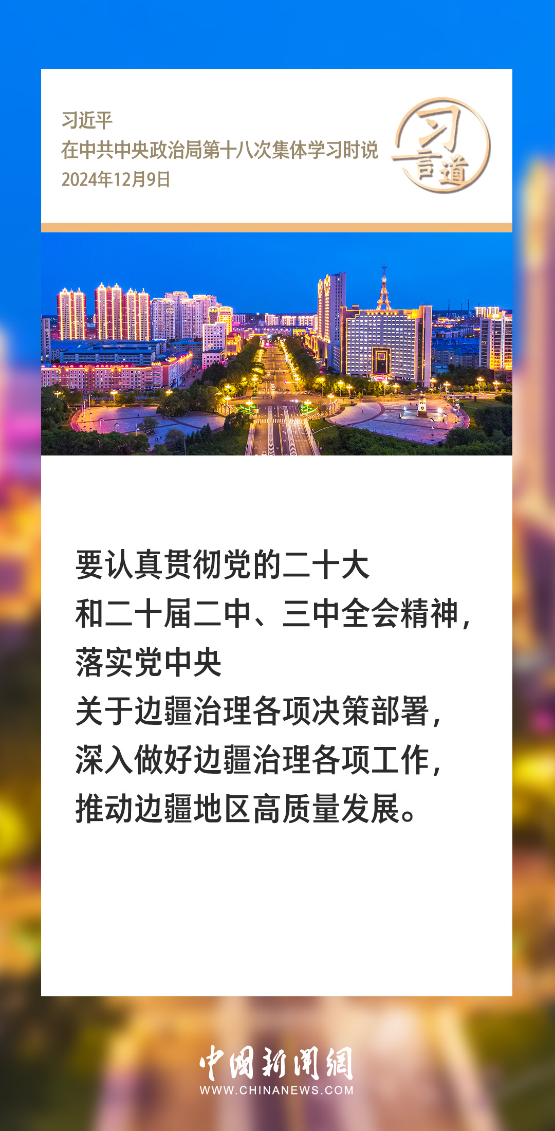 中共中央政治局12月9日就我國(guó)歷史上的邊疆治理進(jìn)行第十八次集體學(xué)習(xí)。中共中央總書記習(xí)近平在主持學(xué)習(xí)時(shí)強(qiáng)調(diào)——