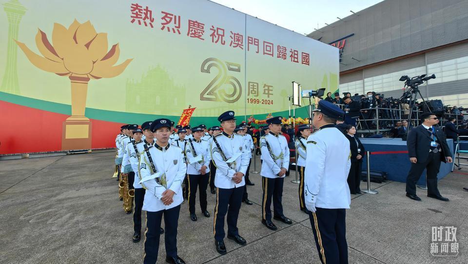 △澳門警察樂(lè)隊(duì)靜候習(xí)主席到來(lái)。(總臺(tái)央視記者段德文拍攝)