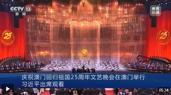 鏡海揚帆風正勁,濠江歡歌向未來。慶祝澳門回歸祖國25周年文藝晚會19日晚在澳門東亞運動會體育館舉行。中共中央總書記、國家主席、中央軍委主席習近平觀看了演出。