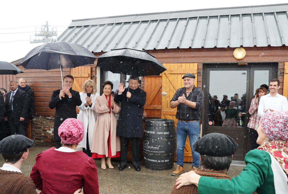 當?shù)貢r間2024年5月7日,應法國總統(tǒng)馬克龍?zhí)貏e邀請,國家主席習近平乘專機離巴黎赴法國西南部上比利牛斯省訪問。馬克龍總統(tǒng)和夫人在圖爾馬萊山口“牧羊人驛站”迎接習近平主席和夫人彭麗媛,共同欣賞當?shù)卮迕癖硌莸木哂袧庥裟戏L情的牧羊人之舞。