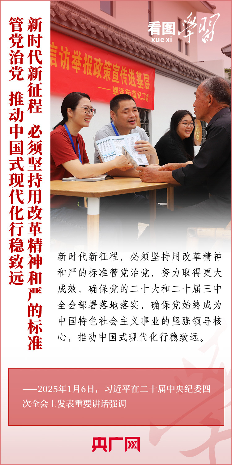 1月6日,習(xí)近平總書記在二十屆中央紀(jì)委四次全會(huì)上發(fā)表重要講話,充分肯定過去一年全面從嚴(yán)治黨取得的新進(jìn)展、新成效,深刻分析當(dāng)前反腐敗斗爭形勢(shì),對(duì)堅(jiān)決打好反腐敗斗爭攻堅(jiān)戰(zhàn)、持久戰(zhàn)、總體戰(zhàn)提出明確要求??倳洀?qiáng)調(diào),新時(shí)代新征程,必須堅(jiān)持用改革精神和嚴(yán)的標(biāo)準(zhǔn)管黨治黨,努力取得更大成效,確保黨的二十大和二十屆三中全會(huì)部署落地落實(shí),確保黨始終成為中國特色社會(huì)主義事業(yè)的堅(jiān)強(qiáng)領(lǐng)導(dǎo)核心,推動(dòng)中國式現(xiàn)代化行穩(wěn)致遠(yuǎn)。一起來學(xué)習(xí)!