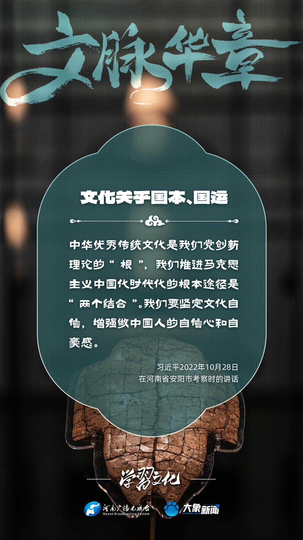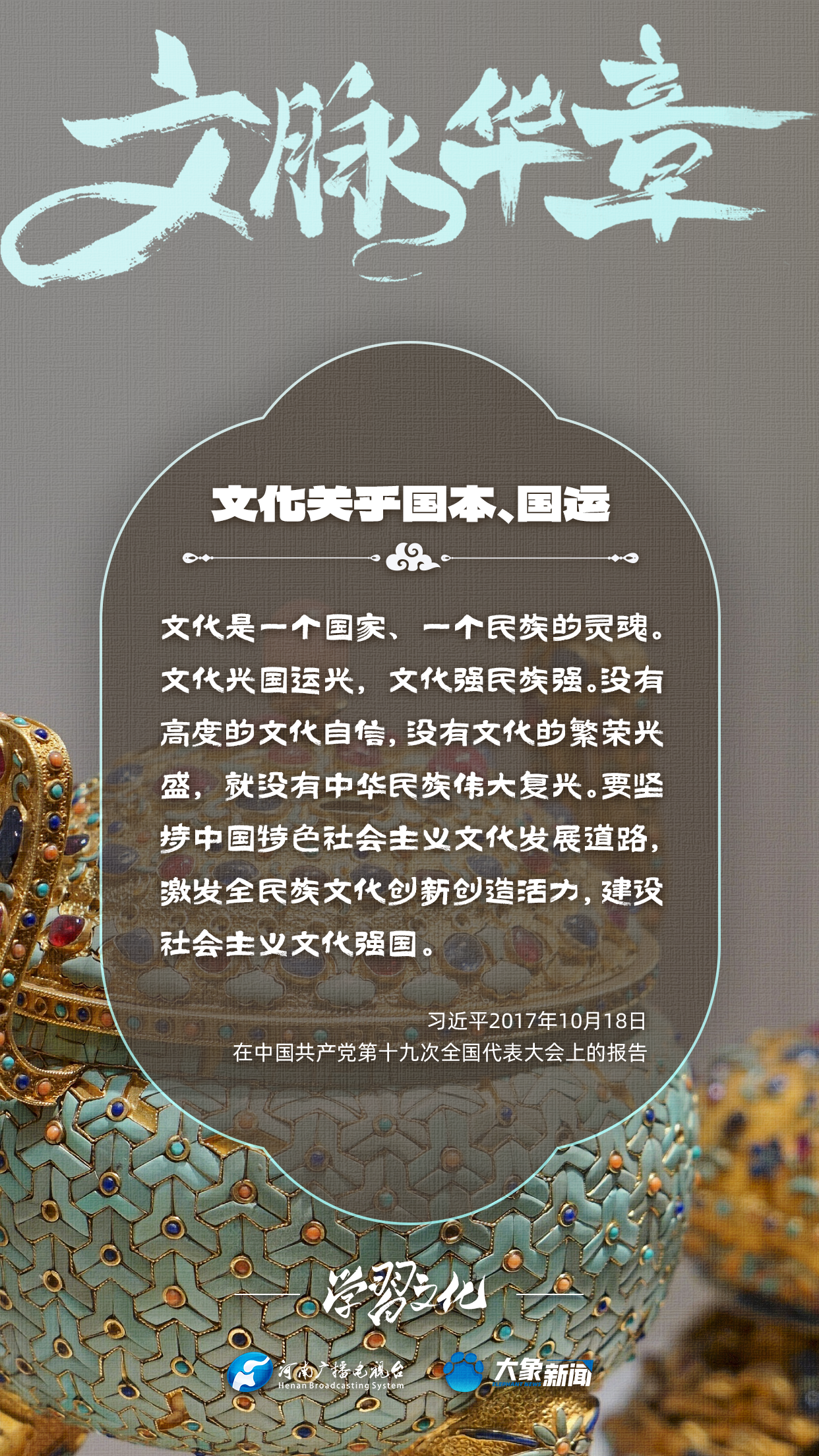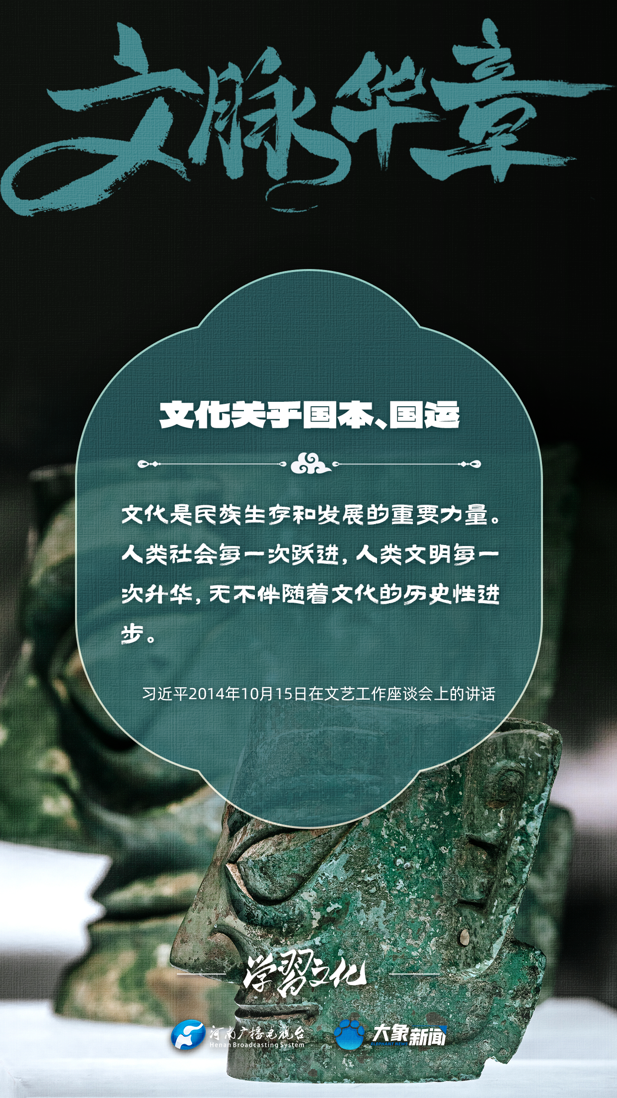習(xí)近平總書記高度重視文化之于國家、之于民族的重大意義,強(qiáng)調(diào):文化是一個(gè)國家、一個(gè)民族的靈魂。文化興國運(yùn)興,文化強(qiáng)民族強(qiáng)。沒有高度的文化自信,沒有文化的繁榮興盛,就沒有中華民族偉大復(fù)興。大象新聞梳理了習(xí)近平總書記的系列重要論述,我們一起學(xué)習(xí)。