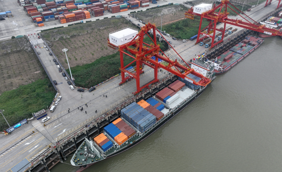 長江黃金水道鏈接海上絲綢之路。自2019年11月開通首條國際航線,到2024年底,武漢陽邏港共開通5條國際直達(dá)航線,年出入境船舶首次突破100艘。