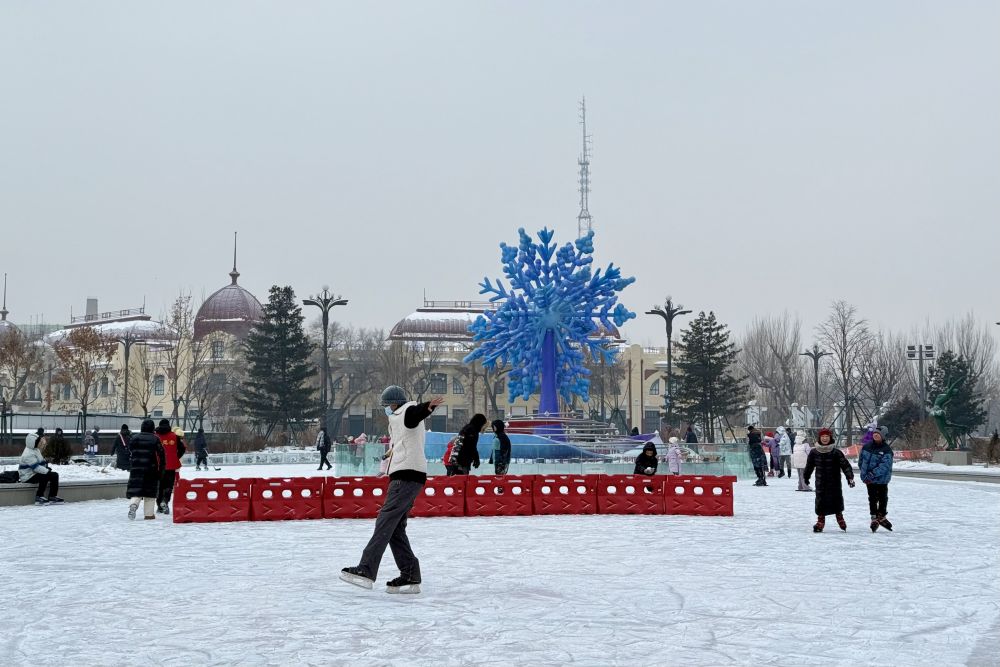 2025年1月17日,哈爾濱市民在位于南崗體育場的公益冰場滑冰。新華社記者 楊思琪 攝
