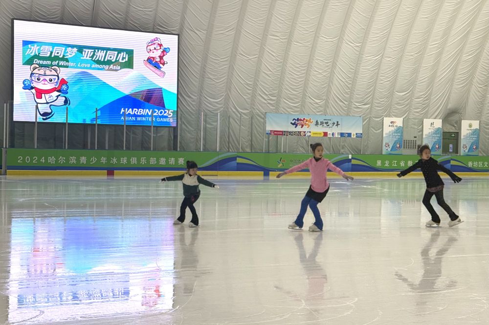 1月7日,位于哈爾濱香坊區(qū)的名將氣膜冰上運(yùn)動中心吸引青少年上冰訓(xùn)練。新華社記者 楊思琪 攝