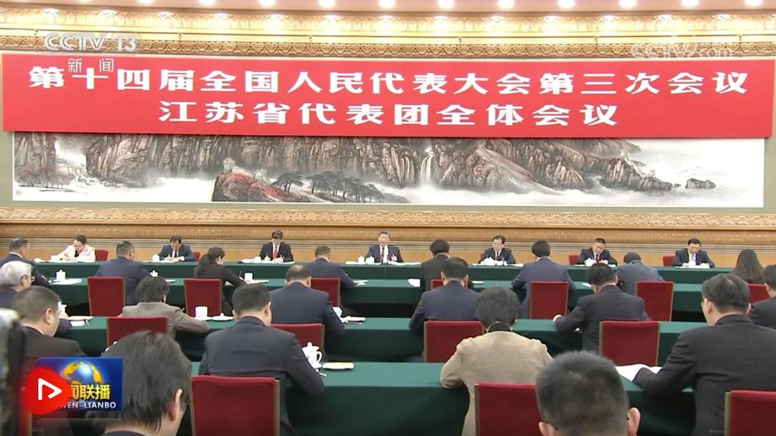在聽取大家發(fā)言后,習(xí)近平作了發(fā)言。他首先表示贊成政府工作報告,對江蘇工作予以肯定,希望江蘇落實好挑大梁的責(zé)任,努力取得新的更大成績。