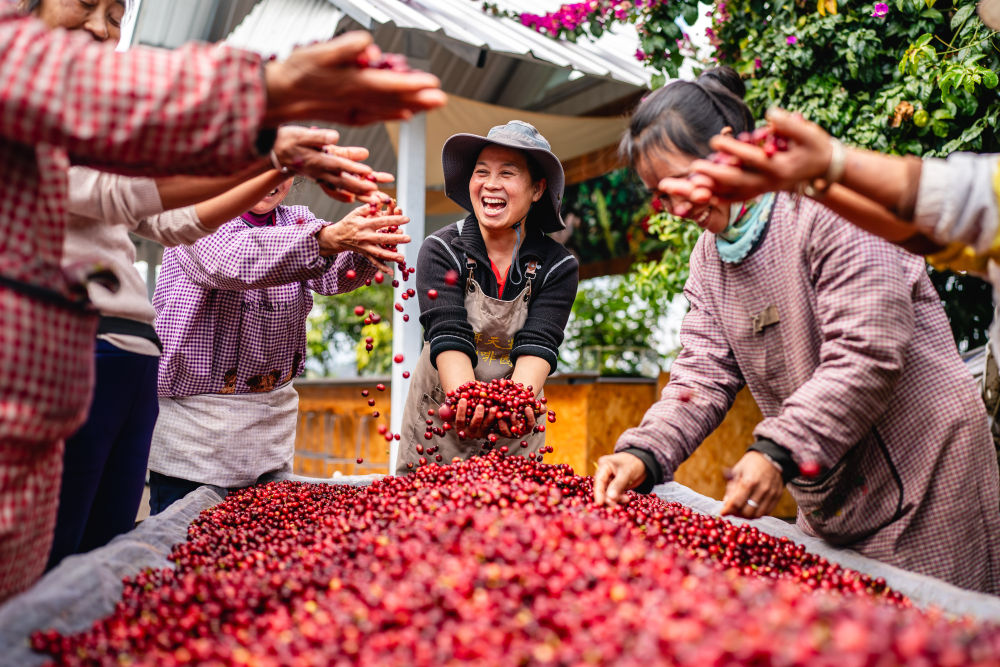 在云南省普洱市思茅區(qū)天玉咖啡莊園,人們在慶祝今年咖啡豐收(2025年1月8日攝)。新華社記者 胡超 攝
